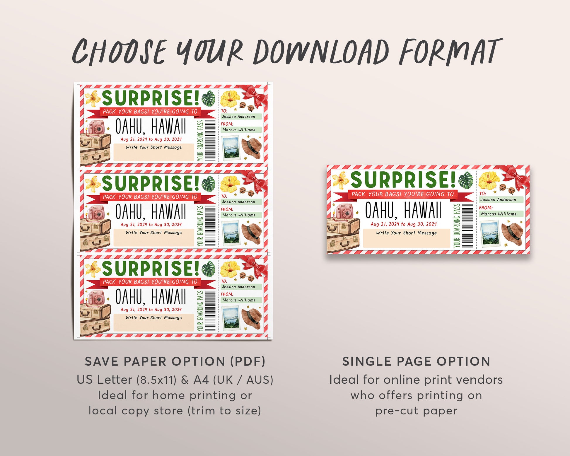 Source : www.etsy.comHawaii Plane Ticket Boarding Pass Editable Template, Surprise Trip